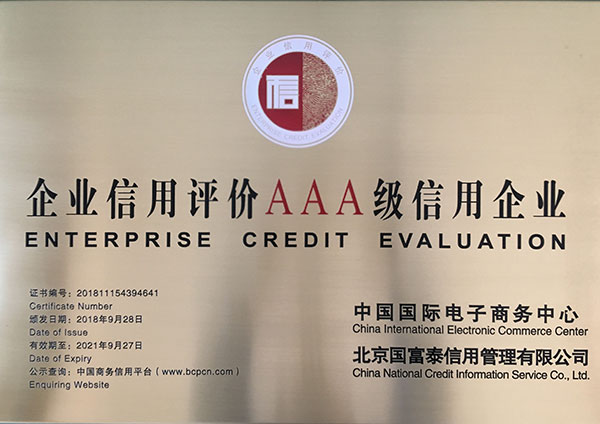 企业信用评级AAA级信用企业